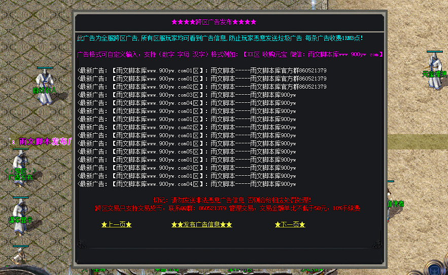 脚本功能:全服每个区都可以通用看见广告内容 |